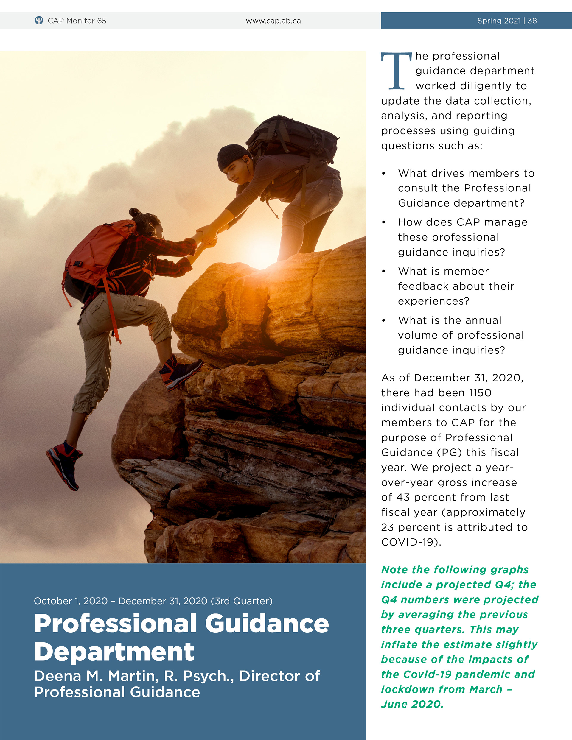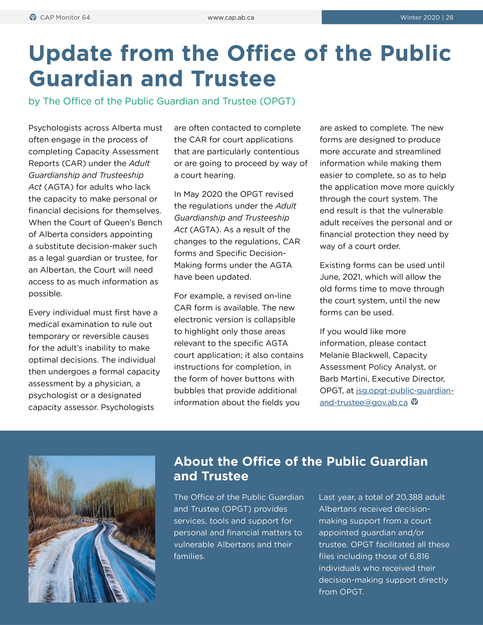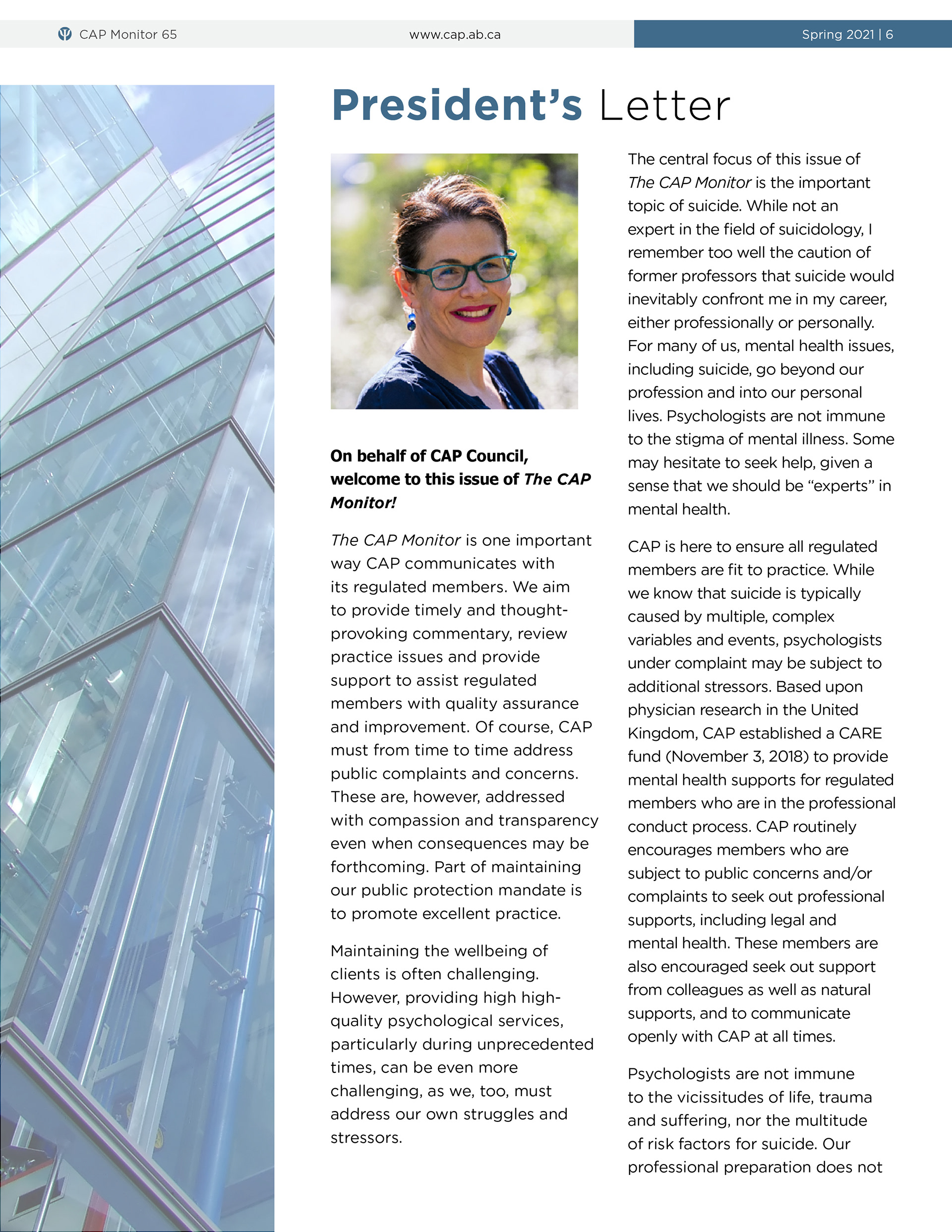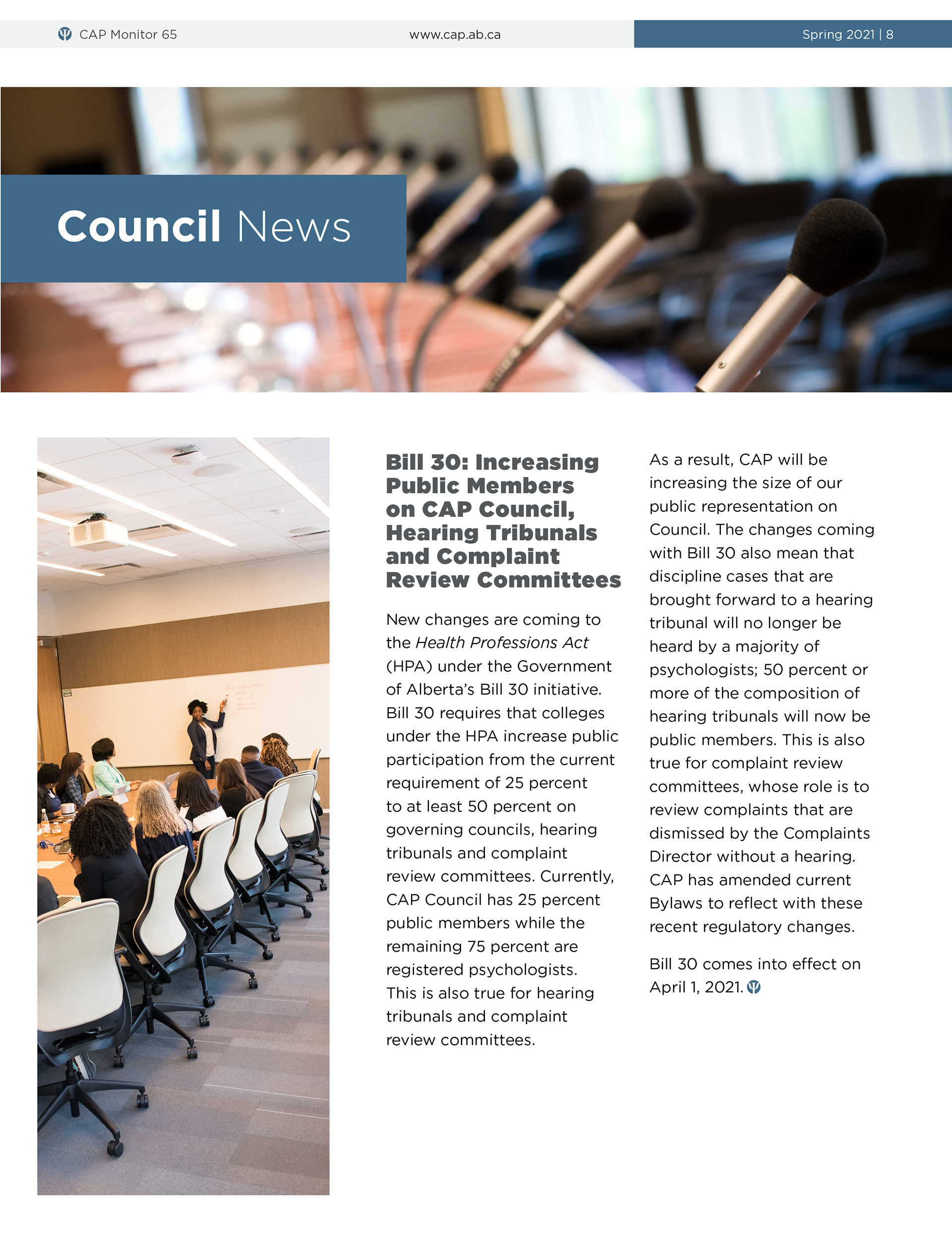 Magazine layout that I created from scratch for the College of Alberta Psychologists (CAP Monitor)