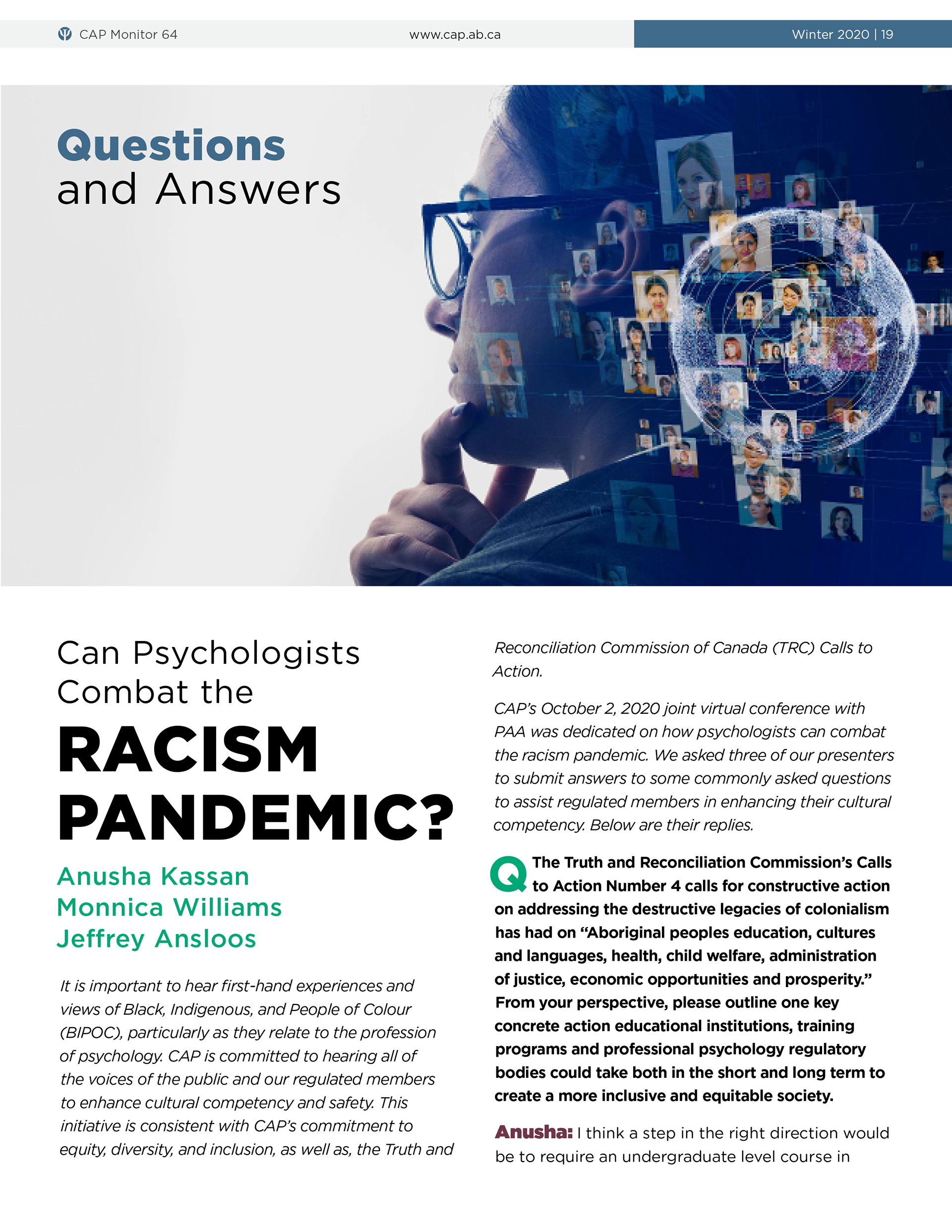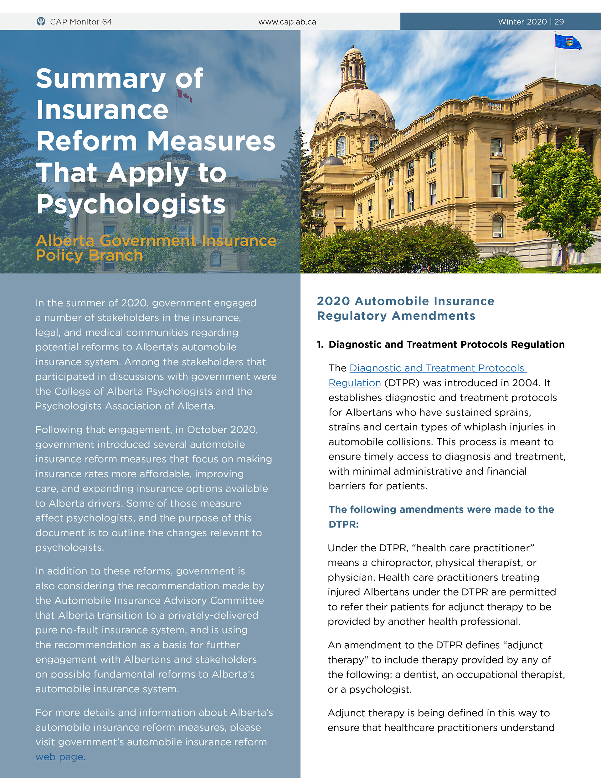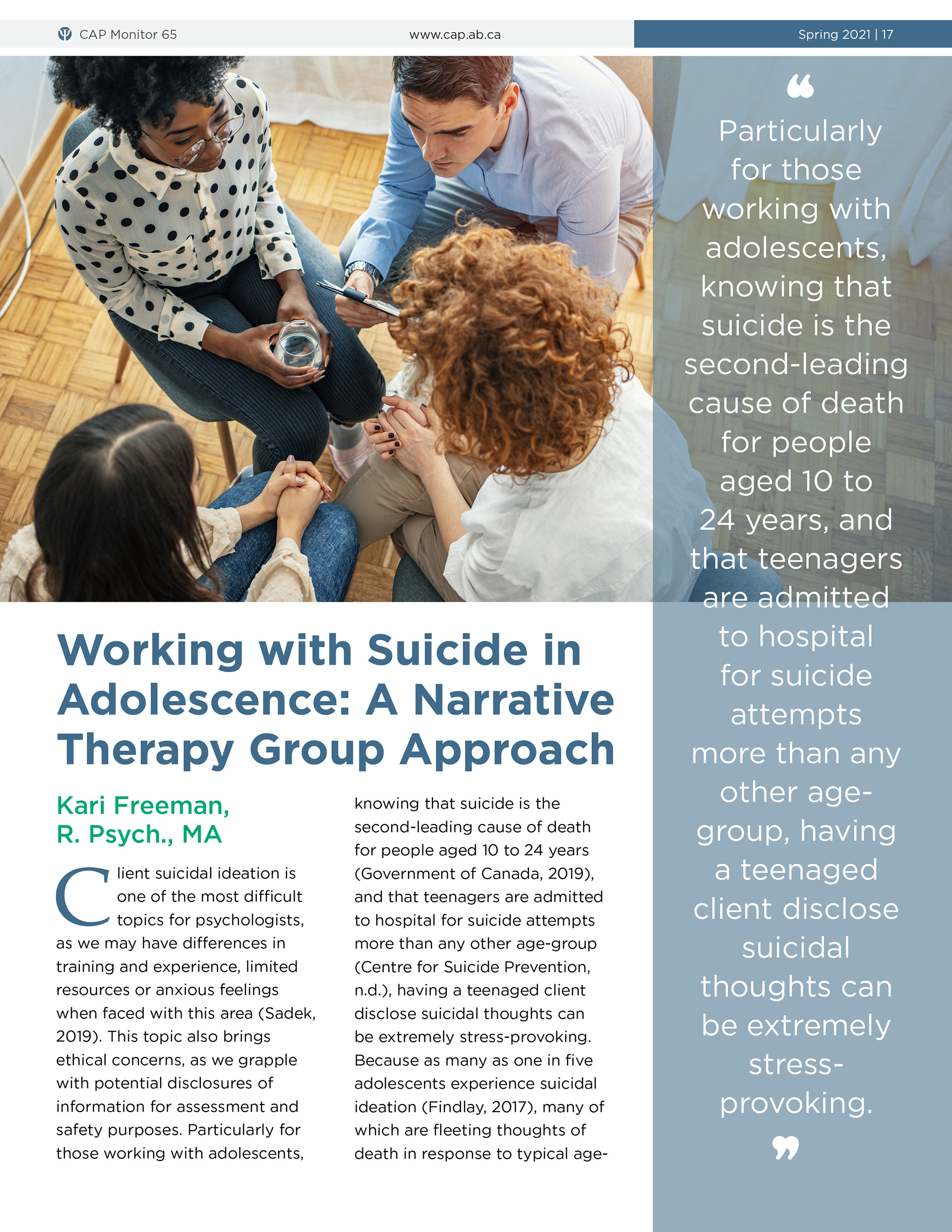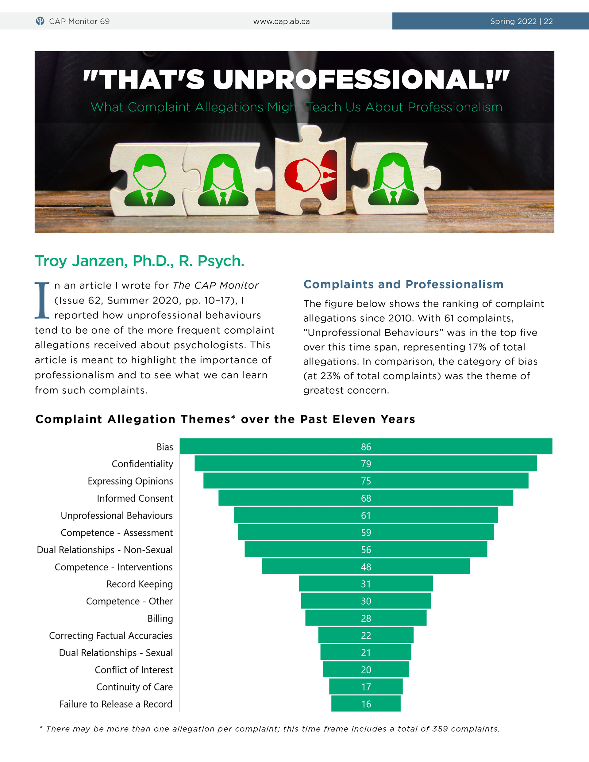 Magazine layout that I created from scratch for the College of Alberta Psychologists (CAP Monitor)