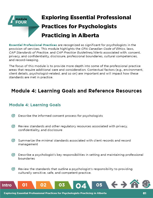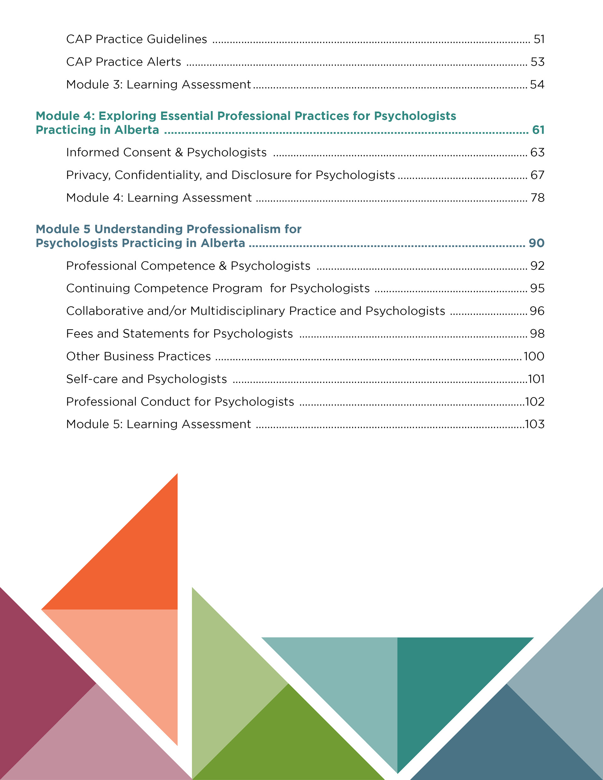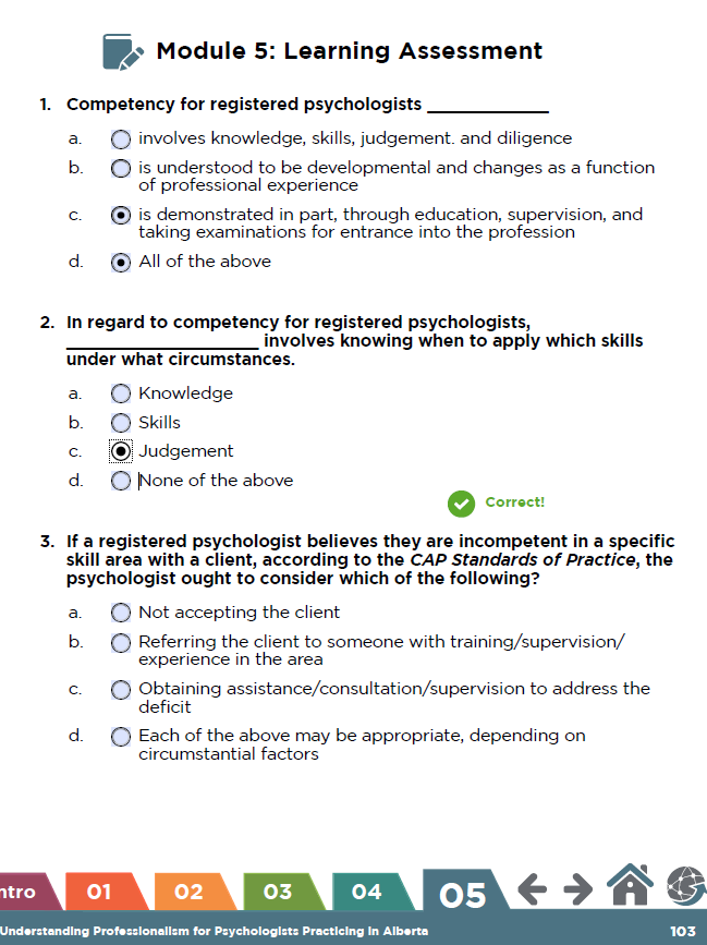 This is an online module that I created for the College of Psychologists. It was over 100 pages and features an interactive quiz.