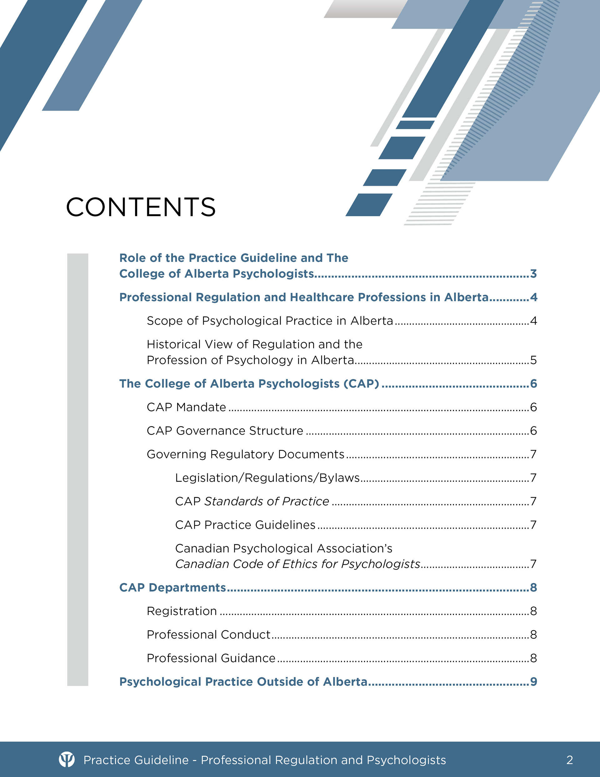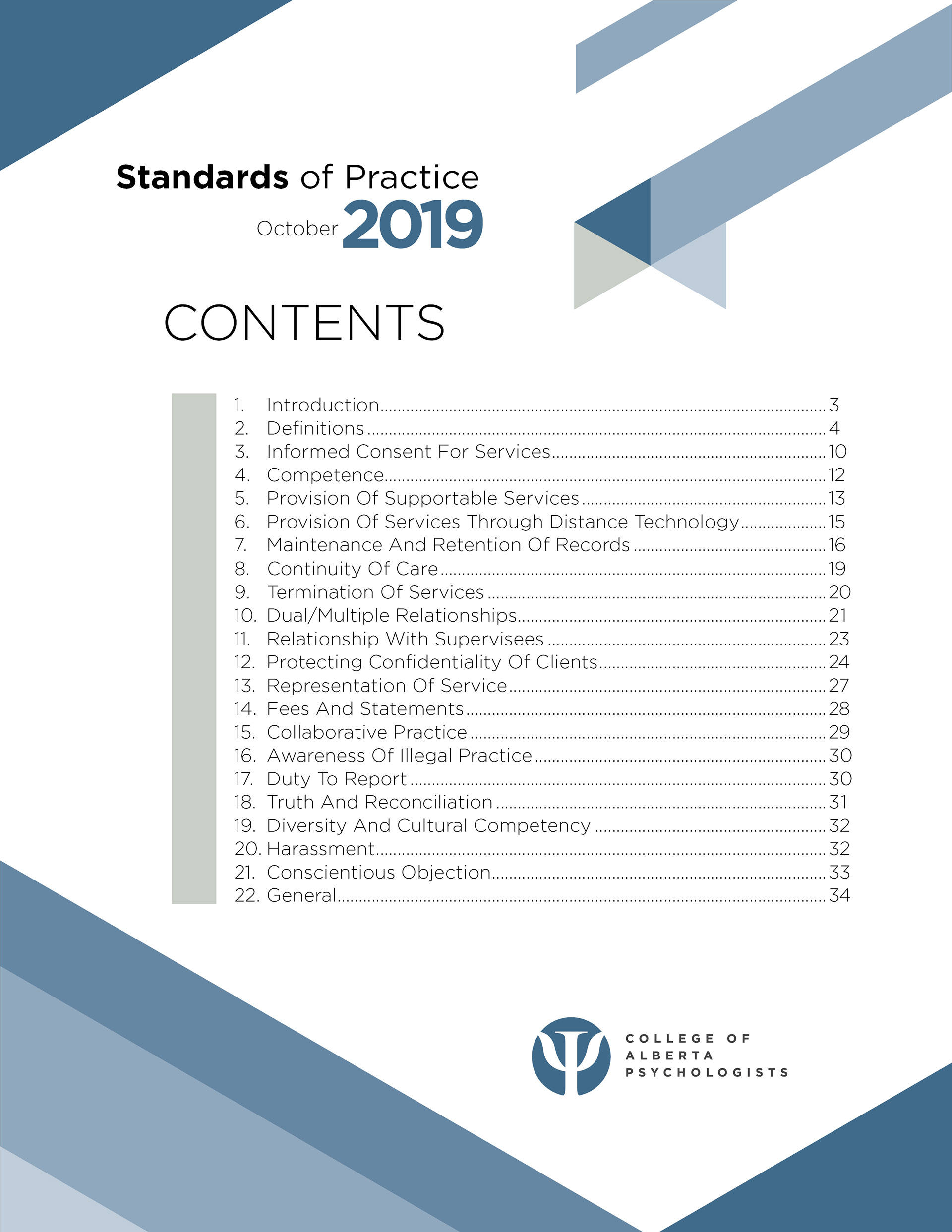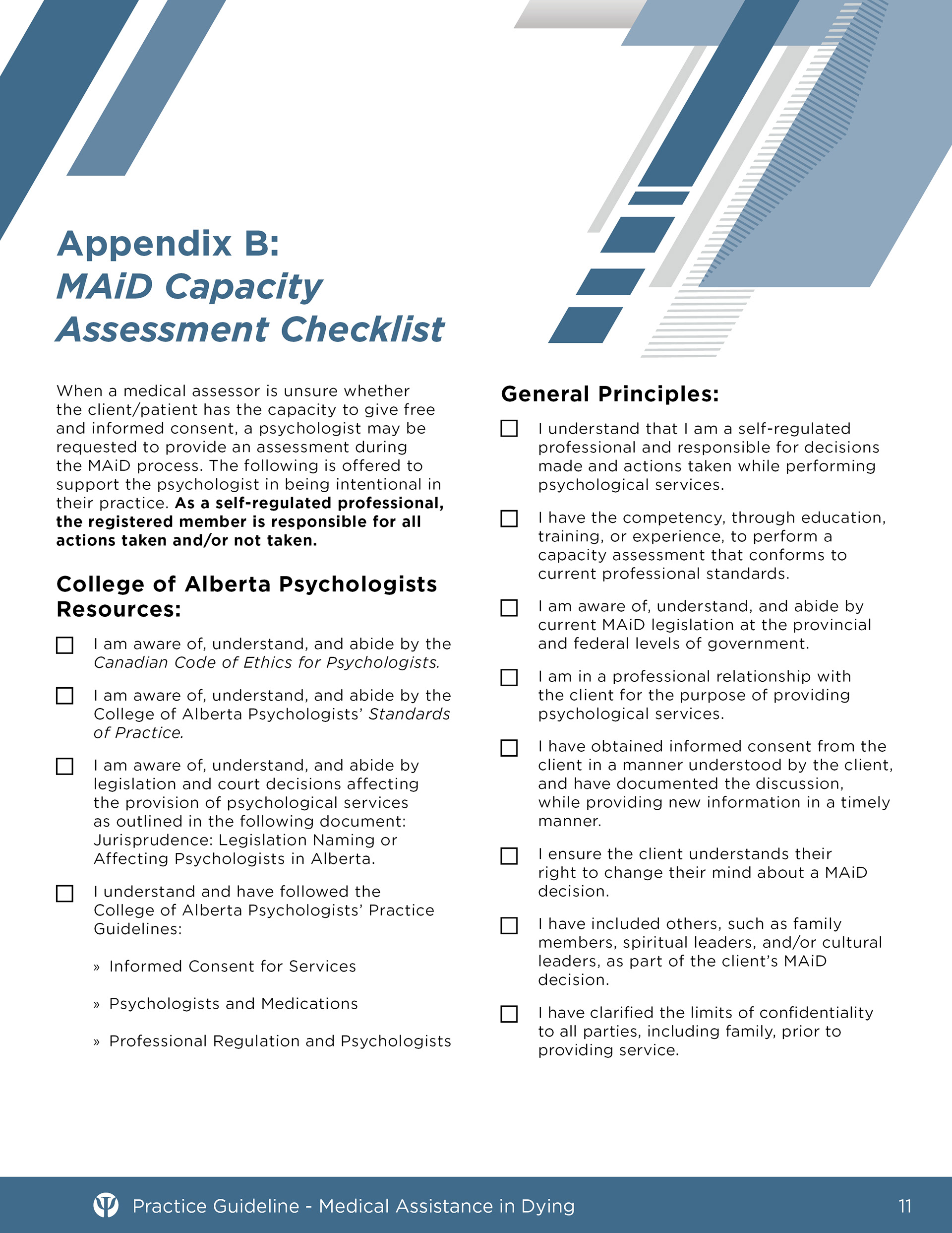 Samples of professional guidance documents for the College of Alberta Psychologists