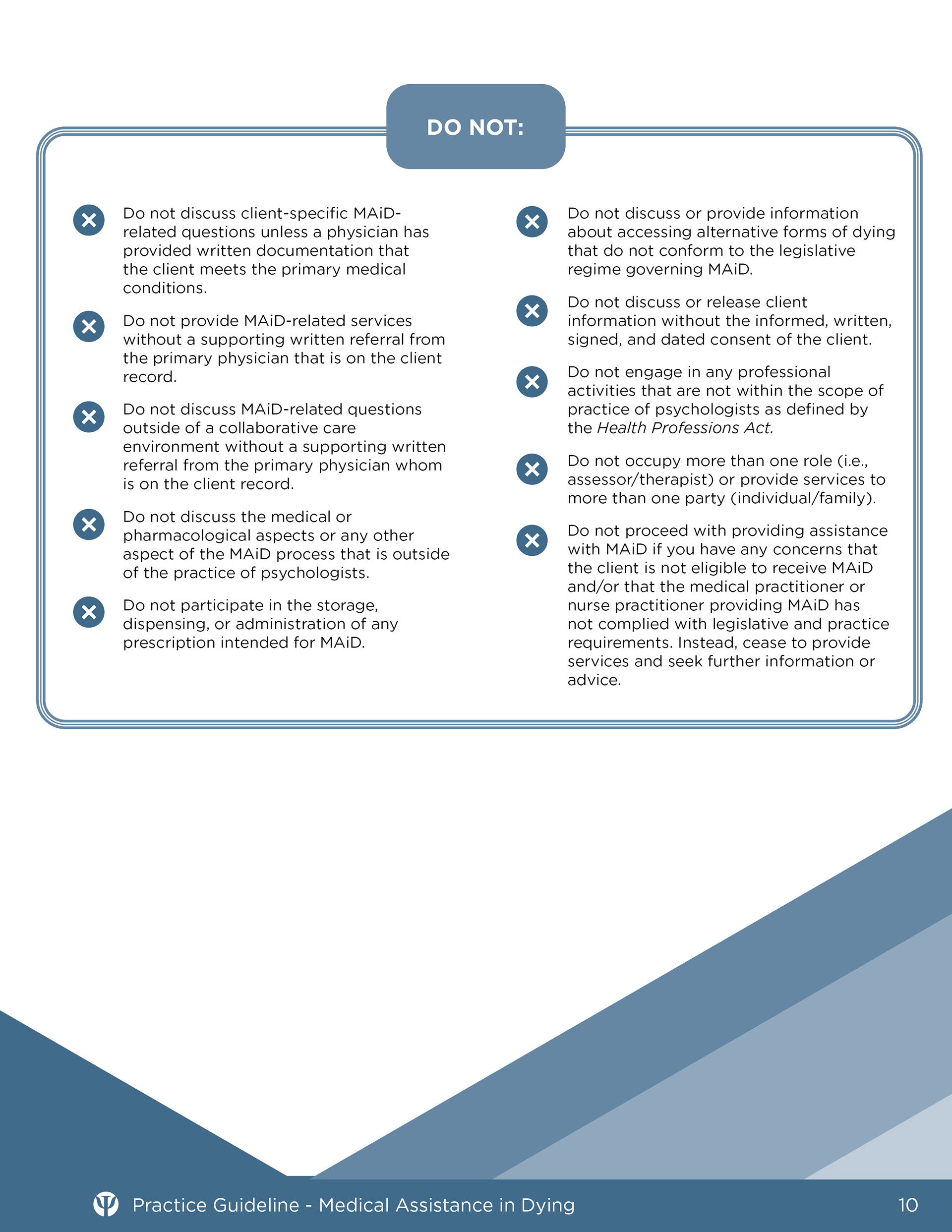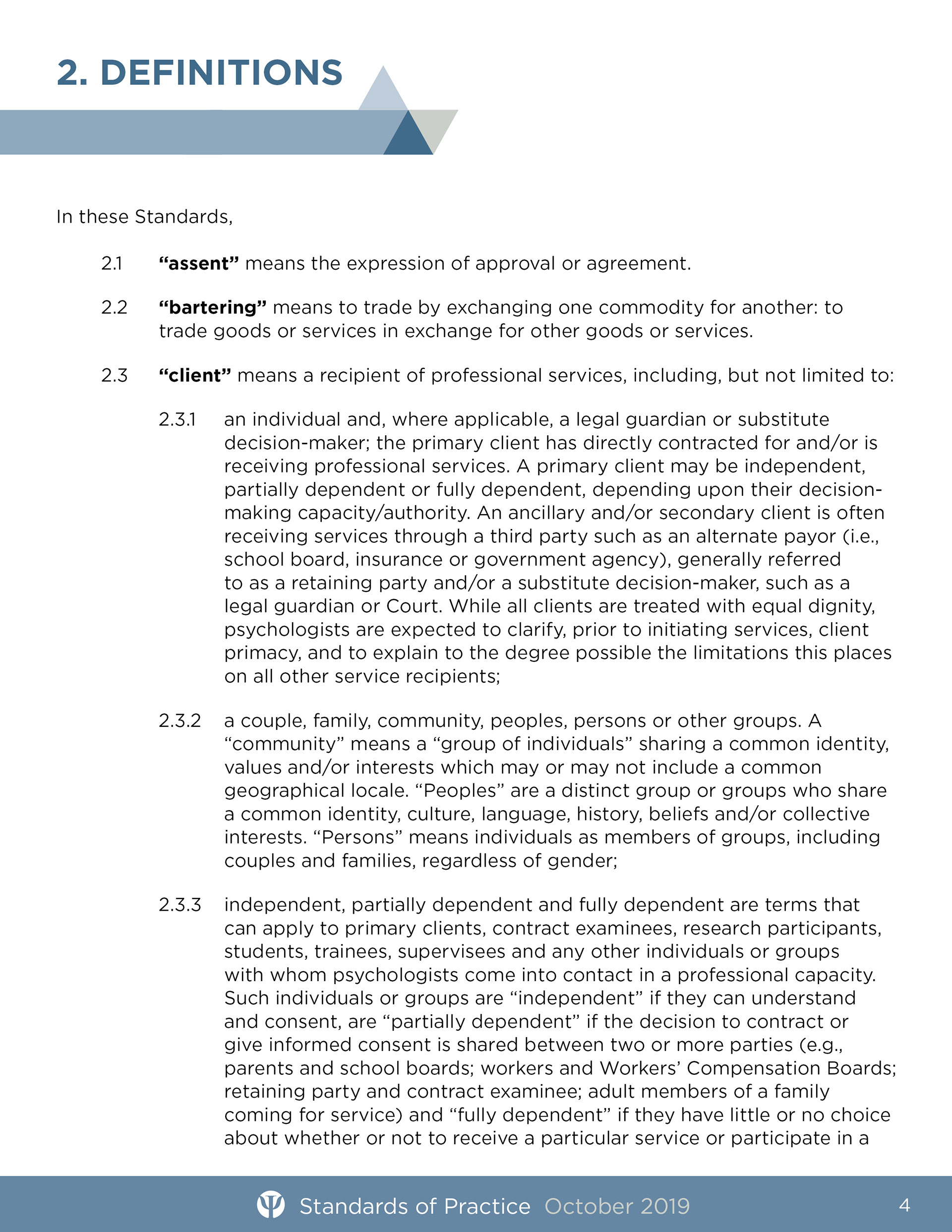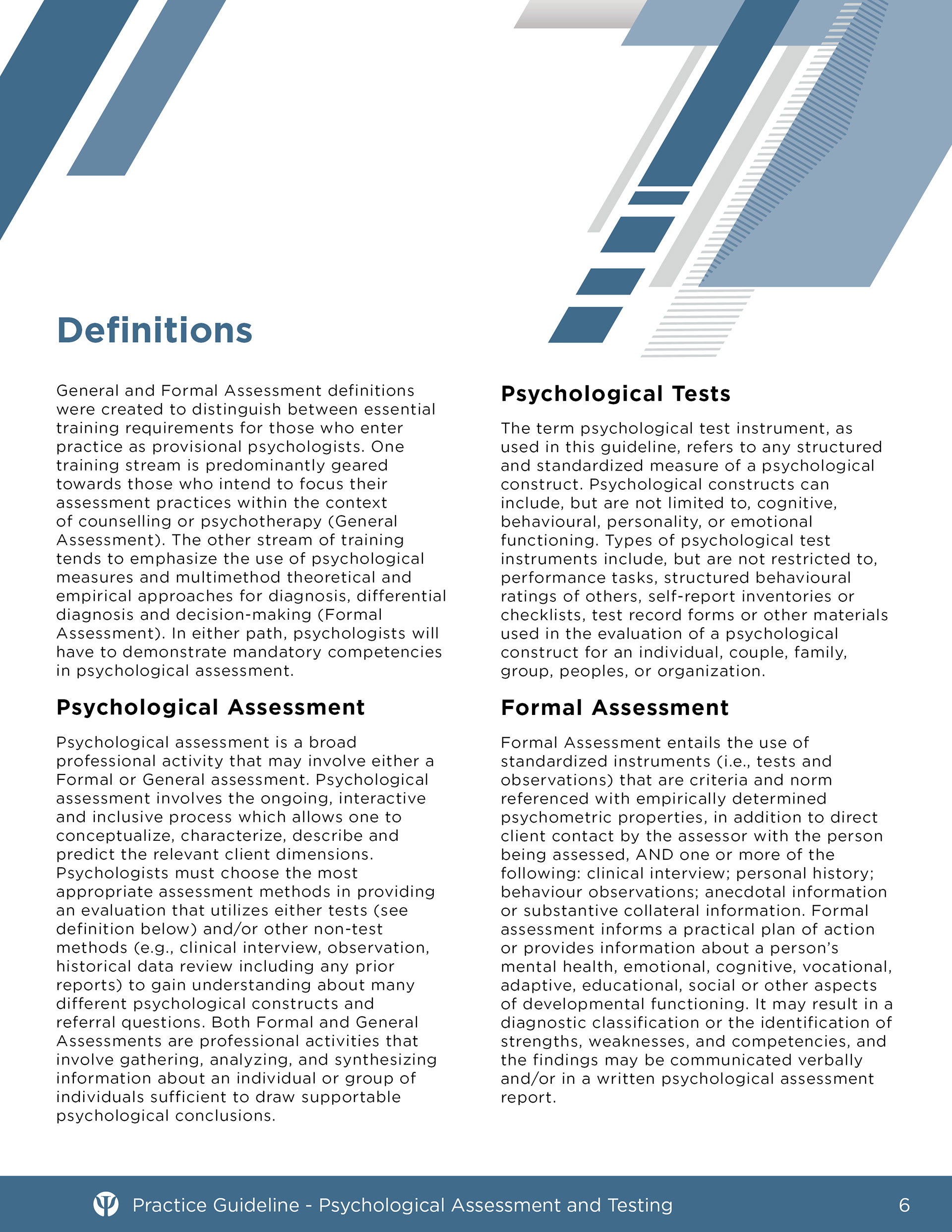 Samples of professional guidance documents for the College of Alberta Psychologists